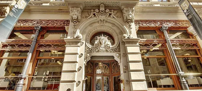 Edificio modernista con espectaculares salones.